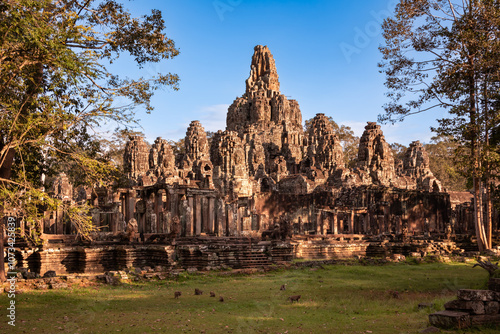 Ancient temple ruins and monkeys in Cambodia