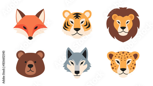 animal, animal, face, face, fox, tiger, lion, bear, wolf, leopard, head, wildlife, mammal, wild, nature, illustration, vector, design, art, graphic, cartoon, isolated, portrait, cute, character, fur, brown, orange, yellow, pattern, eye, template, style, concept, creative, element, print, decoration, decorative, icon, collection, set