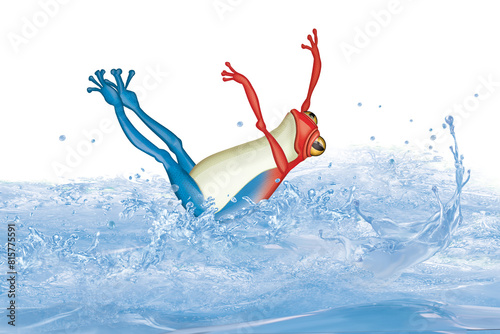 animal, illustration, vector, nature, cartoon, france, blue, white, red, frog, swim, wild, conception, water