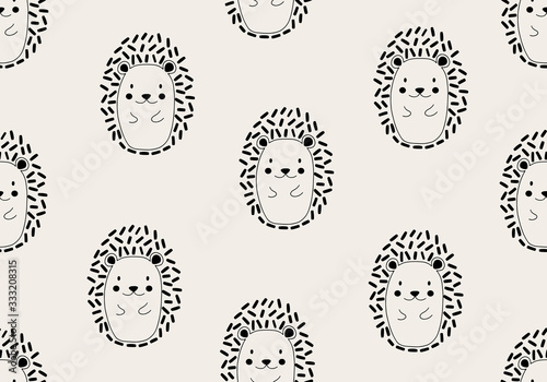 Animal pattern with hedgehog, baby abstract cartoon background,