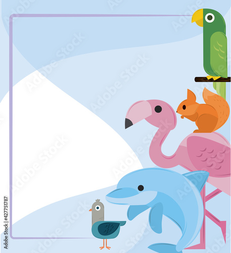 animal, geometric, bird, parrot, dolphin, flamingo, squirrel, wild, wildlife, nature, banner, life, animal, natural, wing, fauna, mascot, vector, illustration, design