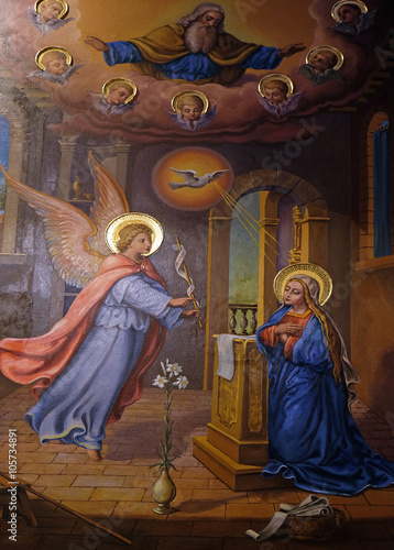 Annunciation of the Virgin Mary, fresco in Church of the Annunciation in Ljubljana, Slovenia