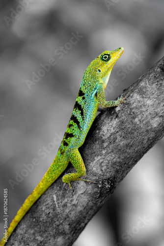 isolated, colourful, lizzard, macro, martinique, animal, background, tree branch, camouflage, caribbean, claw, climb, closeup, coloration, contrast, endemic, eye, fauna, foliage, forest, frond, green, habitat, head, hidden, leaf, nature, palm, predator, reptile, selective focus, skin, tree, tropical, turquoise, voice, wildlife, creature, scale, eye
