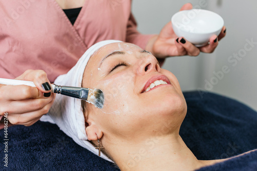 cosmetician, facial, mask, apply, skincare, salon, procedure, beauty, treat, client, female, rejuvenate, cosmetology, woman, spa, beautician, therapy, moisture, pamper, dermatology, cosmetic, care, wellness, specialist, essential, well-being, distilled, hydrate, client, professional, smooth, complexion, smear, product, natural, honed, nourish, routine, feminine, brush, applicator, everyday, daily, indoor, horizontal, crop, unrecognizable, anonymous