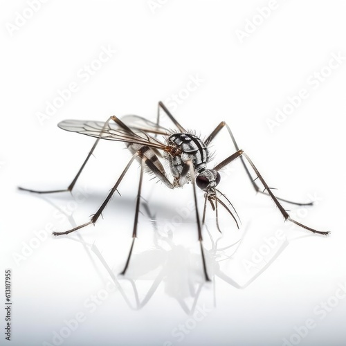 Anopheles mosquito on white background, Dangerous vehicle of zika, dengue, chikungunya, malaria and other infections, AI generated.