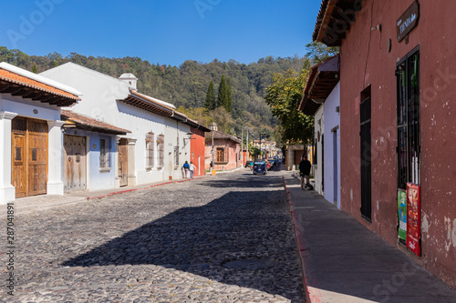 ANTIGUA, SACATEPEQUEZ/GUATEMALA - December 23, 2018: A scene in the UNESCO World Heritage site of Antigua, Guatemala, on a Sunday before Christmas Day 2018.