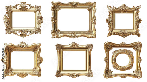 Antique Golden Frames: A collection of exquisite antique golden frames, showcasing intricate designs and ornate details, offer a timeless elegance suitable for showcasing art, photographs, or mirrors.