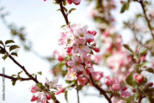 apple tree blossom at springtime with pink flowers