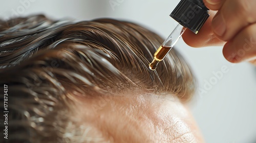 Applying oil for healthy hair care treatment.