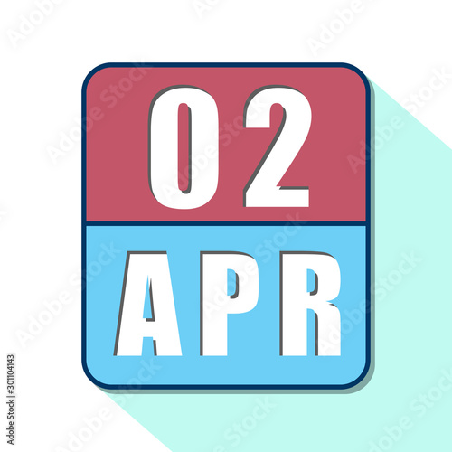 april 2nd. Day 2 of month,Simple calendar icon on white background. Planning. Time management. Set of calendar icons for web design. spring month, day of the year concept