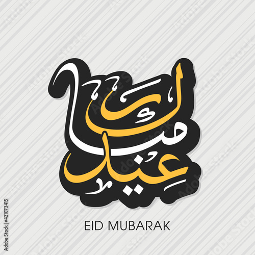 Arabic Calligraphic text of Eid Mubarak for the Muslim community festival celebration.
