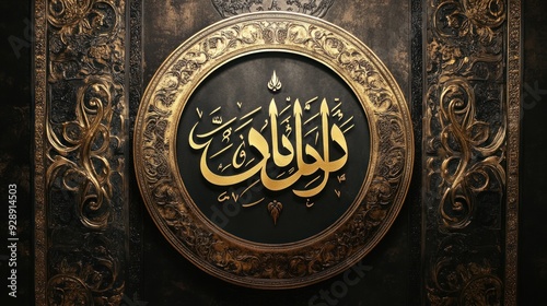 calligraphy, arabic, islamic, art, gold, frame, circular, design, text, decoration, ornamental, gold, ornate, decorative, elegant, vintage, retro, pattern, black, background, metal, abstract, religious, script, traditional, style, embossed, intricate, detail, culture, heritage, symbol, faith, inspiration, beauty, graphic, artwork