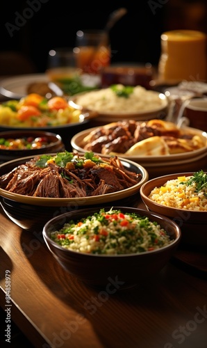 Arabic traditional food bowls Kabsa with meat