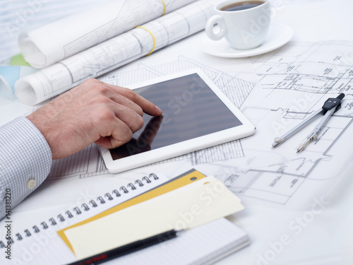 Architect with digital tablet at desk