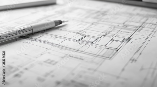 Architectural blueprints with pen, planning a house