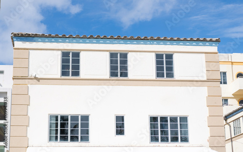 Architectural building. Art deco. Architectural district Art Deco. Modern building of Miami beach. Ocean drive. Miami Beach in Ocean Drive Florida. Art Deco building architecture. 23rd Street
