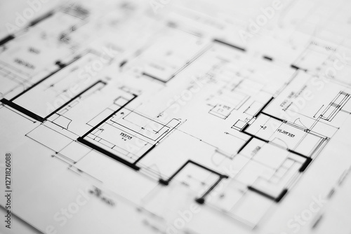 Architectural design plan on table, generative AI image
