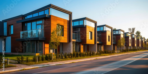 housing, estate, modern, architecture, home, residential, contemporary, design, urban, building, exterior, facades, structure, construction, neighbourhood, suburb, property, real estate, development, community, subdivision, stylish, trendy, sleek, minimalist, luxury, elegant, sustainable, green, roomy, window, door, roof, balcony, garden, landscape, lifestyle, generative, ai, illustration