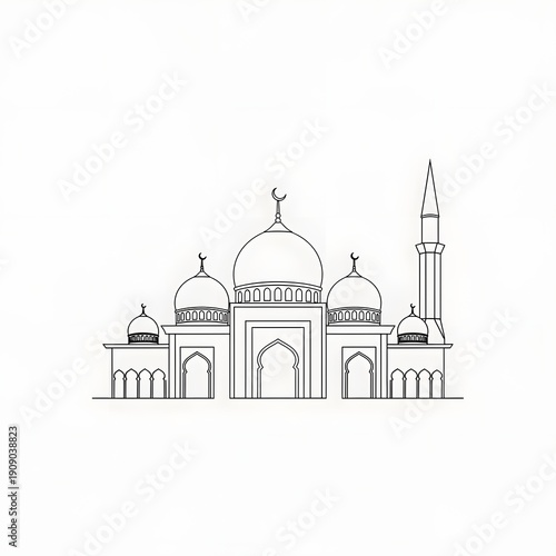 mosque, architecture, vignetting, line, drawing, islamic, religious, structure, dome, minaret, central, roof, entrance, arch, building, traditional, design, art, cultural, religion, sacred, geometry, ornament, minaret, crescent, blueprint, artistic, illustration