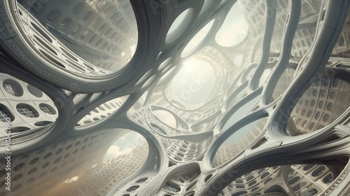 Architectural visualization infinite fractal space complex geometric structures interconnected patterns sense of depth within endless expanse