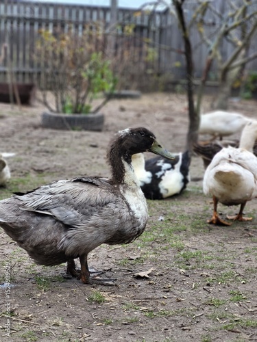 ark-feathered duck on village ground