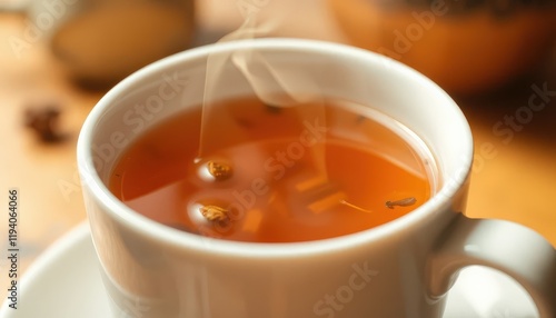 tea, hot tea, cup of tea, white cup, relaxation, comfort, enjoyment, spice, aromatic, autumn, winter, cosy, drink, beverage, closeup, macro, food photography, still life, table setting, wooden table, brown, orange, amber, vapour, steam, delicious, healthy, hot beverage, herbal tea, tea leaf, comfort food, holiday, christmas, fall, relaxing, food and drink, spiced