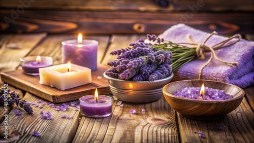 Aromatic Lavender Spa Setting with Scented Candles and Bath Salts