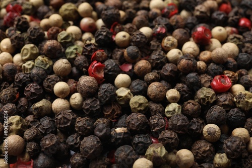 Aromatic spices. Different peppers as background, closeup
