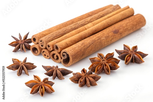 Aromatic star anise and cinnamon sticks, brown and dry, perfect Christmas spice food ingredients