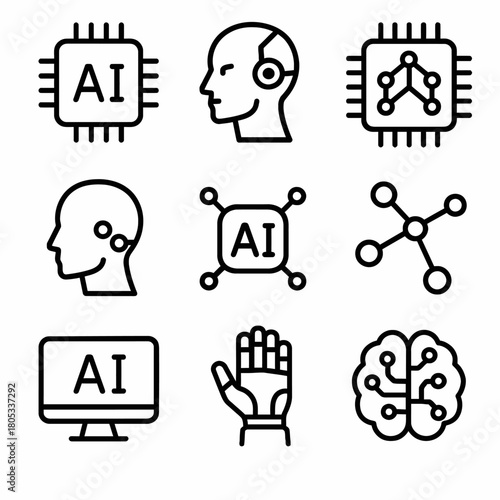 Artificial intelligence and machine learning icons