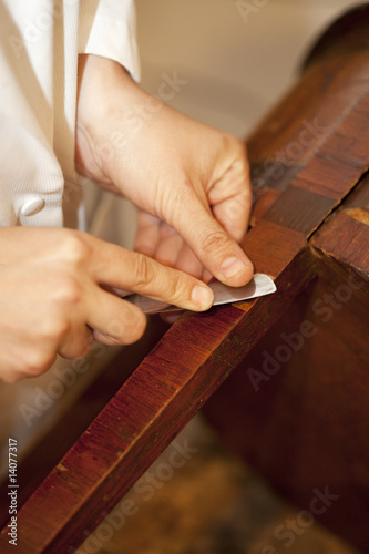 brilliancy, craftsman, studio, forest, varnish, varnished, scissors, tool, sculptor, craft, art, hand, work, motif, mirror image, precision, craft, furniture, time, antiquity, restoration, renovate