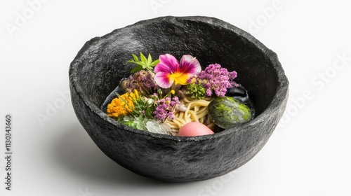 noodle, dish, flower, herb, bowl, artistic, presentation, cookery, epicure, colourful, decoration, culinary, food, ingredient, fresh, nature, beauty, gastronomy, dining, table, meal, serving, photo, design, modern, style, unique, flavorful, delicate, composition, creativity, culture, eatery, health, aesthetic, vegetarian, organic, vibrant, local, elegant, handcraft, artful, seasonal, arrangement, texture, freshness, traditional