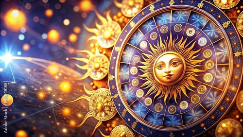 Artistic representation of zodiac suns with intricate designs and celestial elements for astrology themes