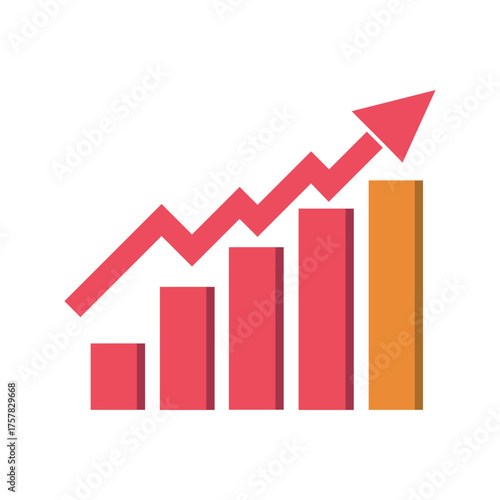 graph, chart, arrow, rising, upward, increase, growth, bar, diagram, statistic, datum, analysis, information, presentation, progress, report, success, finance, business, market, economy, invest, infographic, flat, up, financial, white background