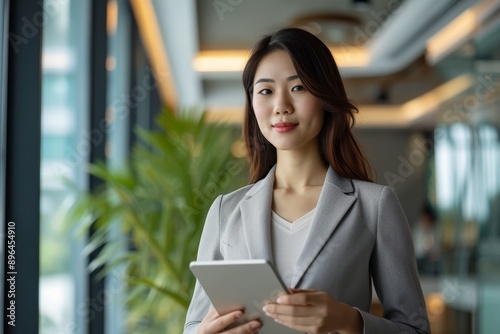 Asian businesswoman using digital tablet in office leading a professional company with smart corporate management technology