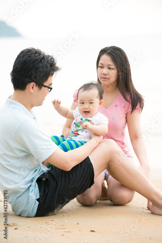 asian family enjoying quality time on the beach with father, mot