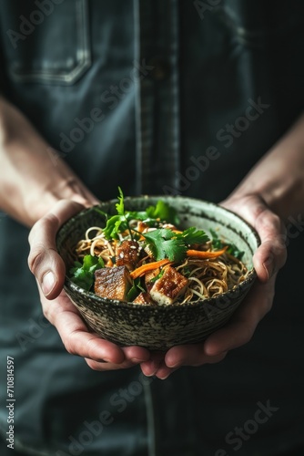 healthy, food, salad, meal, dinner, lunch, fresh, organic, diet, nourishment, hand, vegetarian, ingredient, bowl, delicious, green, vegetable, tasty, background, dish, epicure, vegan, cook, kitchen, closeup, homemade, man, hold, noodle, asian