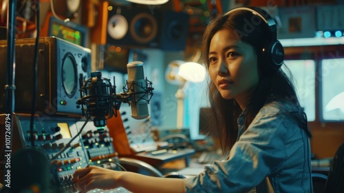 Asian Woman in a Radio Studio Setting