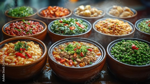 Assorted Chinese Dishes in Clay Pots