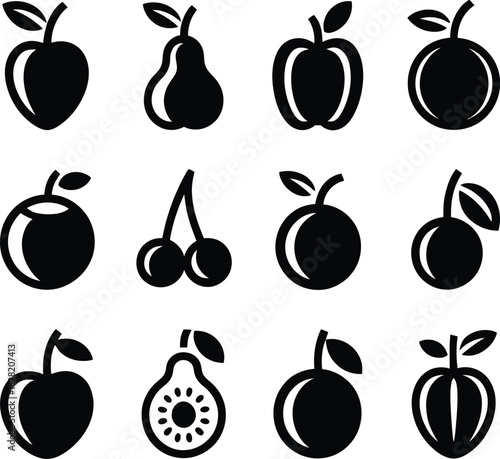 apple, pear, cherry, plum, fruit, berry, produce, food, healthy, sweet, juicy, fresh, natural, organic, ingredient, nourishment, vitamin, diet, dessert, snack, harvest, garden, fruit farm, tree, plant, leaf, stem, seed, pit, slice, whole, icon, symbol, silhouette