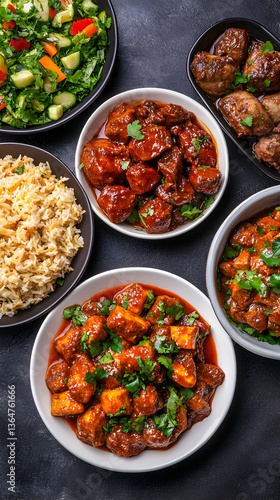 indian, food, dish, curry, meat, chicken, rice, vegetable, salad, dinner, meal, plate, cookery, spicey, tasty, delicious, eatery, buffet, serving, healthy, protein, flavorful, appetising, lunch, portion, top, view, overhead, colourful, traditional, east, asian, vegan, vegetarian, easy, quick, homemade, preparation