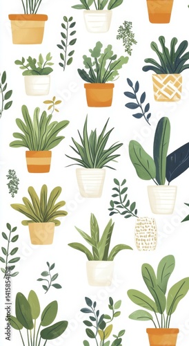 plant, pot, foliage, green, white, background, botanical, leaf, houseplant, indoor, container, floral, nature, decoration, flora, domestic, growth, nobody, life, object, set, collection, variety, different, element, simple, minimal, natural, decorative, graphic, wallpaper, surface, texture, pattern, repeat, tile