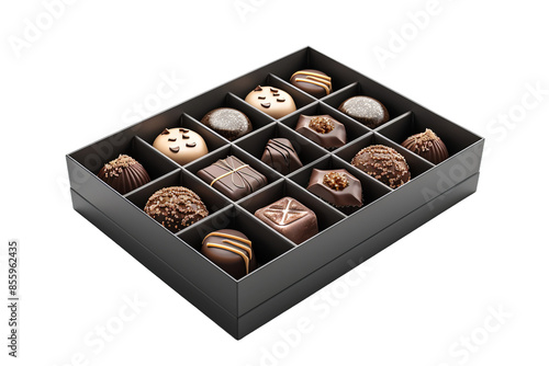 Assortment of Delicious Chocolates in a Box isolated on transparent background png