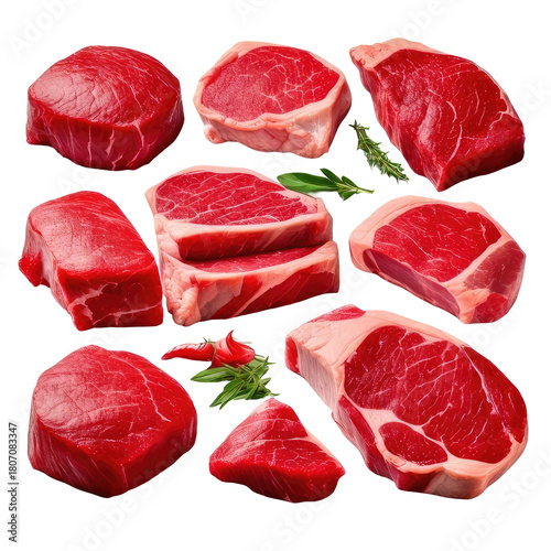 Assortment of fresh red meat cuts ready for cooking