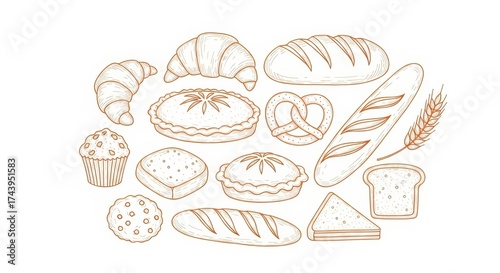 Assortment of Hand-Drawn Bakery Items Illustration.