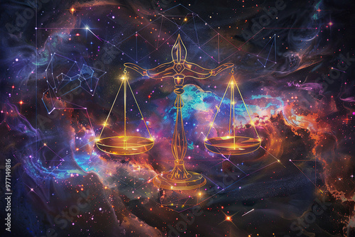 Astrological composition with concept of Libra zodiac sign symbol
