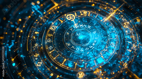 Astrological composition with zodiac circle in signs and symbols. Arcane - Portal. Illustration