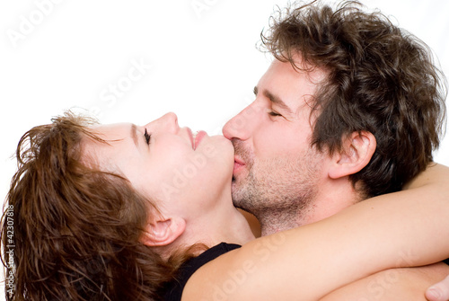 adult, affectionate, beautiful, bonding, carefree, casual attire, cheerful, closeup, couple, embrace, enjoyment, expressing, face, feeling, female, finger, flirting, hand, happiness, heterosexual, husband, isolated, joy, kiss, love, male, married, man, passion, positivity, profile, relaxation, romance, sensuality, serene, shoulder, smiling, temptation, togetherness, touching, tranquil, 2, well-being, white, wife, woman, young