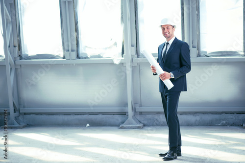 occupation, standing, looking, smiling, adult, engineer, men at work, planning, professional, man, construction, male, document, caucasian, building, safety, hard hat, industry, clothing, manual, business, engineering, male, drawing, confidence, examining, surveyor, design, architecture, contractor, paper, art, work, indoor, manager, attractive, activity, arm, helmet, smile, young, holding, suit, beauty, plan, 1, man, blueprint, architect, arm