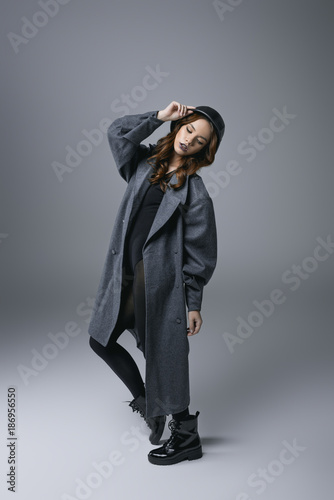 beautiful, person, girl, people, model, caucasian, sensuality, style, fashion, coat, elegant, stylish, woman, trendy, vogue, attractive, sensual, posing, seductive, fashionable, modelling, styling, studio shot, young adult